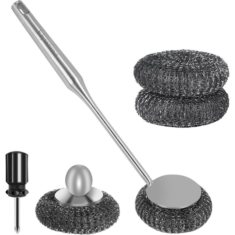 Il est souvent composé de matériaux comme du plastique ou du caoutchouc pour la durabilité et une surface non glissante. La tête de nettoyage est fixée à la poignée et est généralement composée de matériaux abrasifs tels que des poils en nylon, de la laine d'acier ou une combinaison des deux.