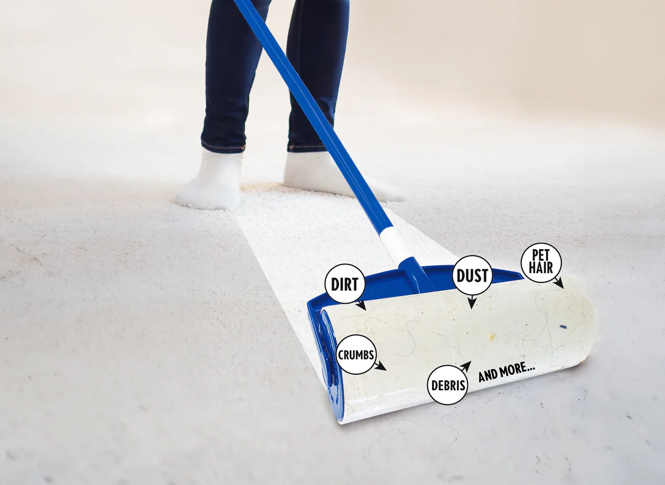 La poussière aime se rassembler dans les endroits les plus étranges, comme les murs et les plafonds. Utilisez le Master Clean Sticky Mop ™ pour rouler de la poussière, des toiles d'araignée et même des marques éraflées sur des surfaces peintes. Sa grande surface collante garantit que vos murs restent propres sans avoir besoin d'un chiffon humide ou de produits chimiques durs. Juste quelques passes, et vos murs seront aussi bons que nouveaux - pas d'échelle requise!